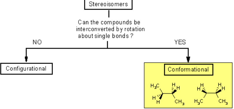 Conformational isomers (also called conformers) are a type of stereoisomer that differ by the rotation around a single sigma (σ) bond. Unlike structural or geometric isomers, conformers interconvert easily at room temperature and do not involve breaking bonds.