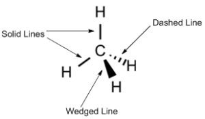 To show the three-dimensional arrangement of atoms around a chiral carbon, chemists use wedge-dash diagrams: