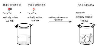 A racemic mixture (or racemate) is an equimolar mixture of two enantiomers — that is, two stereoisomers that are non-superimposable mirror images of each other. Because these enantiomers rotate plane-polarized light in equal and opposite directions, a racemic mixture appears optically inactive.