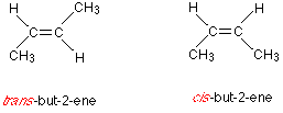 - Trans-but-2-ene: –CH₃ groups are on opposite sides.