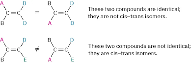 - Each carbon (in the double bond or ring) must be bonded to two different groups.