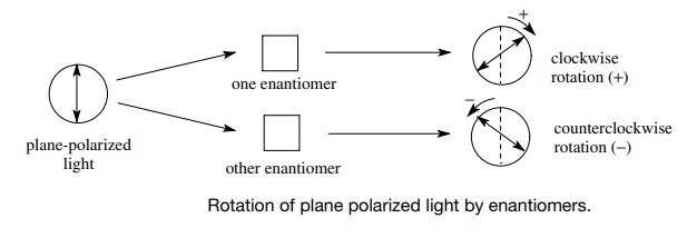 Enantiomers are optically active — they rotate the plane of plane-polarized light in opposite directions: