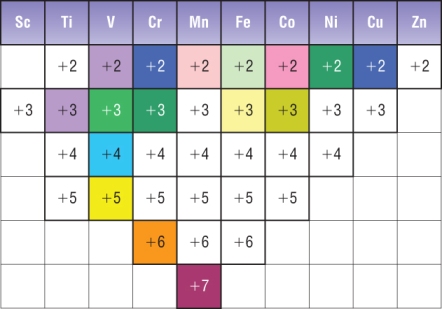 | Mn | +2 to +7 | \( \text{MnO}_4^- \) (Mn = +7), \( \text{Mn}^{2+} \) |