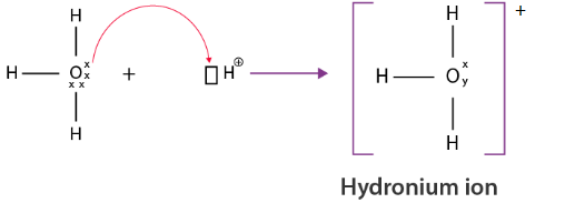 A coordination bond is shown using an arrow (→) from the donor (base) to the acceptor (acid).