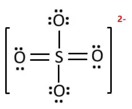 Sulfur has 6 valence electrons, each oxygen has 6, and we add 2 for the charge.