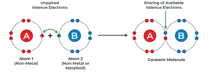 - Atoms share electrons through covalent bonding so that each atom achieves a noble gas configuration.
