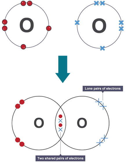 - Oxygen (O) – typically forms 2 bonds, with 2 lone pairs