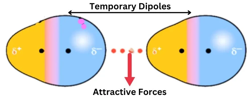 - Arise due to temporary dipoles caused by momentary electron distribution.