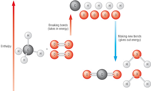 Breaking chemical bonds requires energy (endothermic), while forming new bonds releases energy (exothermic). The balance between these two determines the overall energy profile of the reaction: