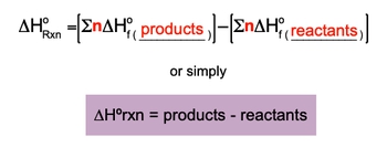 | Standard Enthalpy of Formation | Energy change when 1 mol of a compound is formed from its elements in their standard states | \( \Delta H^\circ_f \) | Exo or Endo |