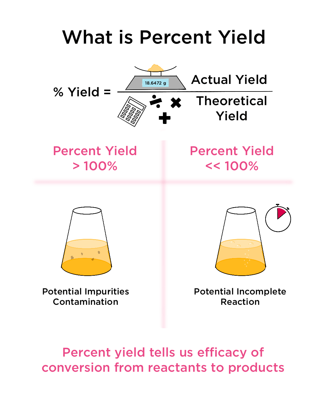 \( \text{Percentage Yield} = \left( \frac{\text{Experimental Yield}}{\text{Theoretical Yield}} \right) \times 100 \)