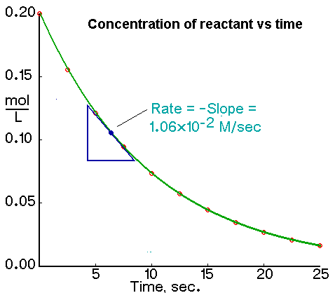 - The slope gives the rate of change of concentration.