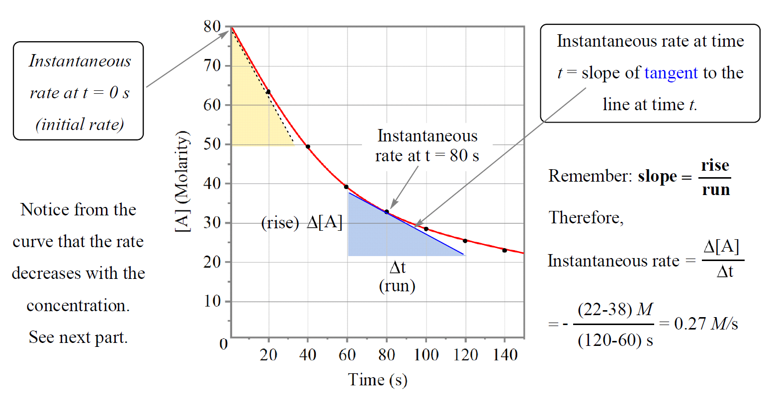 - Instantaneous rate: rate at a specific point in time (slope of tangent to the curve)