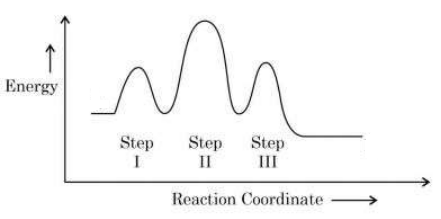 - The mechanism has three steps → the energy profile should show three transition states (three peaks) and two intermediates (valleys).