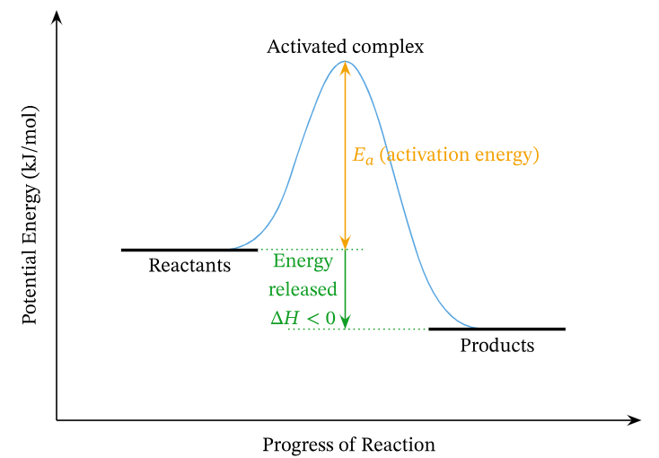 - Activation Energy (Ea): The energy barrier that must be overcome for the reaction to proceed. It is the difference in energy between the reactants and the transition state.