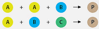 General form: \( \text{A} + \text{B} + \text{C} \rightarrow \text{Products} \)