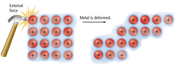 - This is because layers of metal ions can slide over each other when a force is applied, without breaking the metallic bond.