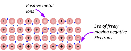 - Atoms in a metal lose their outer shell electrons and become cations.
