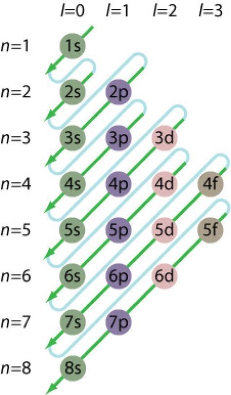 - 1s → 2s → 2p → 3s → 3p → 4s → 3d → 4p
