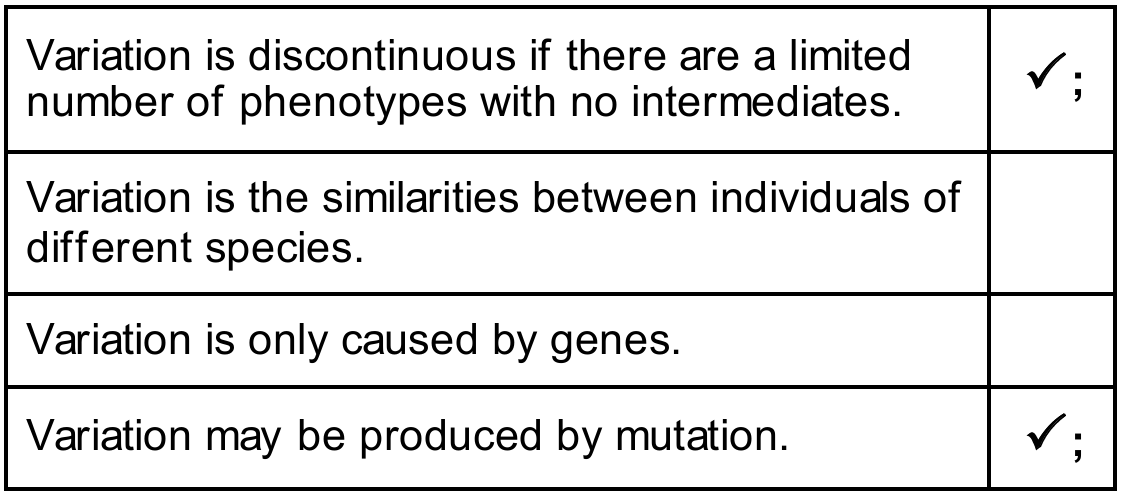 (a) The list shows some statements about variation. Place ticks (✓) in the boxes to show which statements are correct.