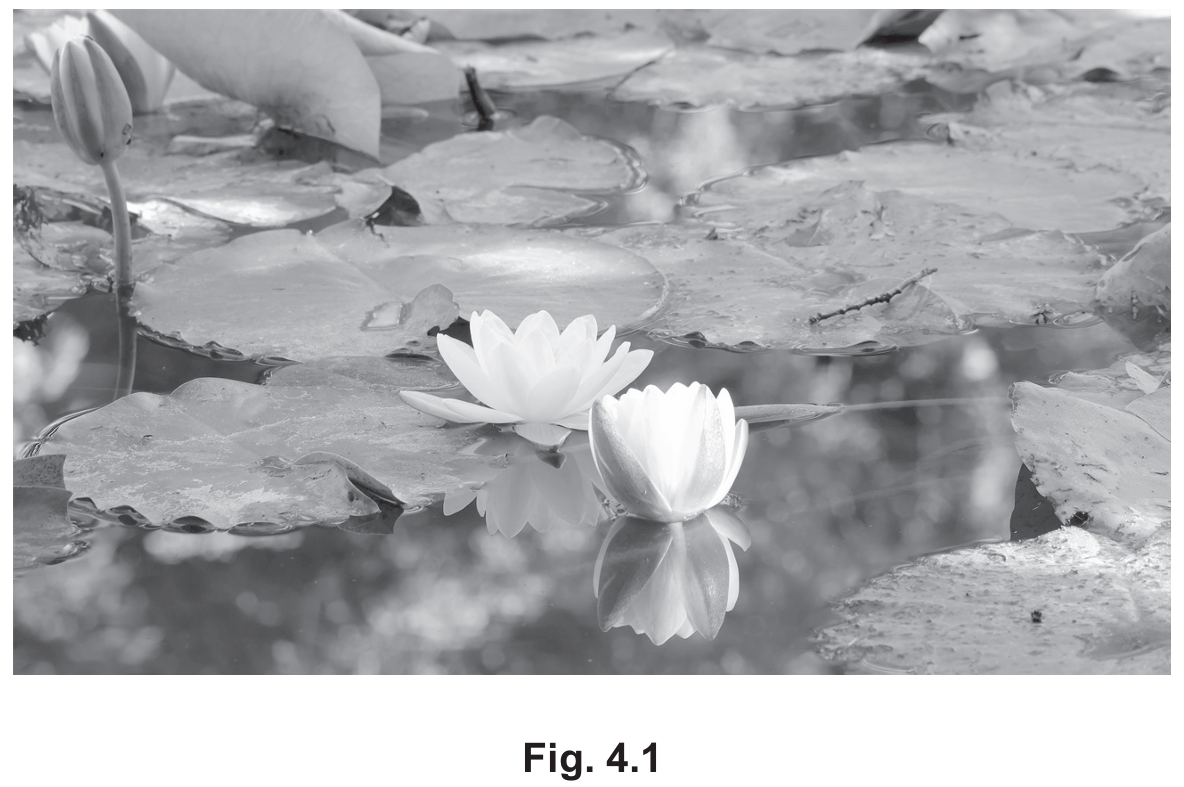 Fig. 4.1 is a photograph of a water lily, Nymphaea alba, in a lake.