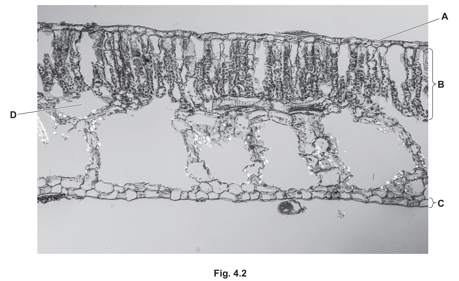 Fig. 4.2 is a photomicrograph of a cross-section of part of a water lily leaf.