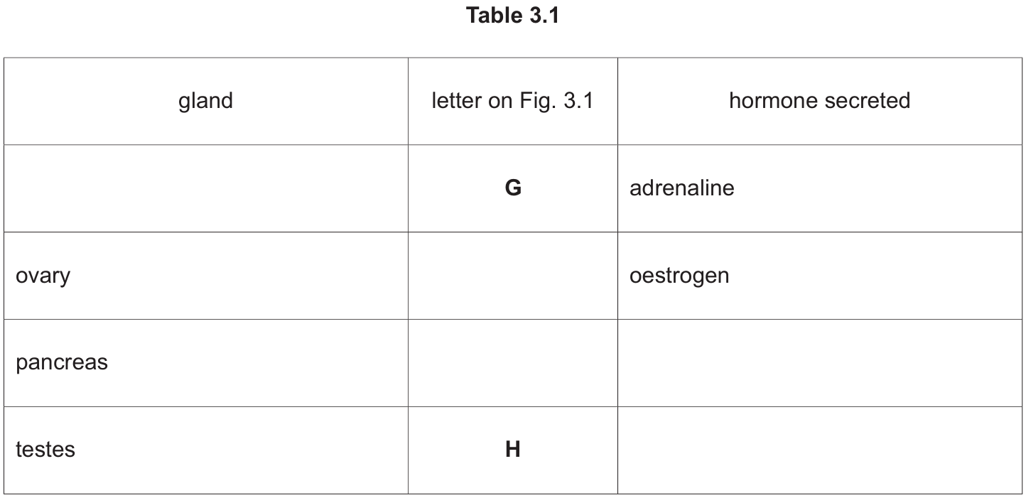 (a) (i) Use the information in Fig. 3.1 to complete Table 3.1.