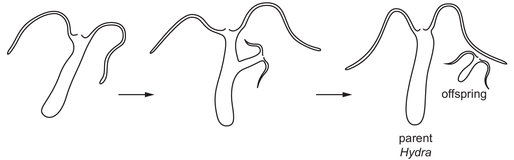 The diagram shows one parent Hydra growing and releasing an offspring from the side of its body.