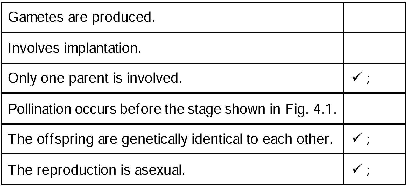 Tick (✓) three statements that describe the reproduction shown in Fig. 4.1.