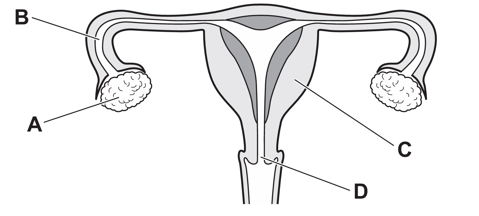 The diagram shows the human female reproductive system.