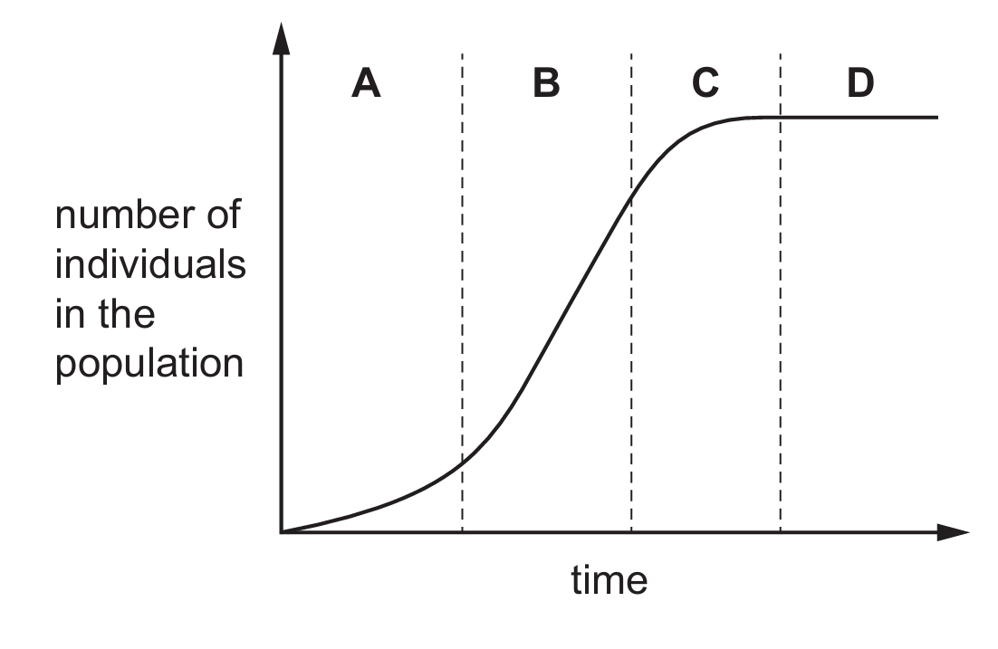 Which letter represents the lag phase in the population graph shown?