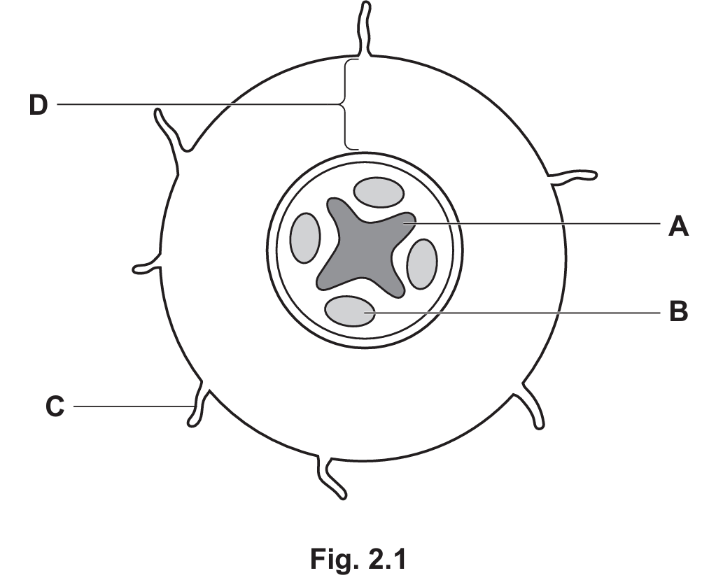 (ii) State the process by which water enters structure C in Fig. 2.1.