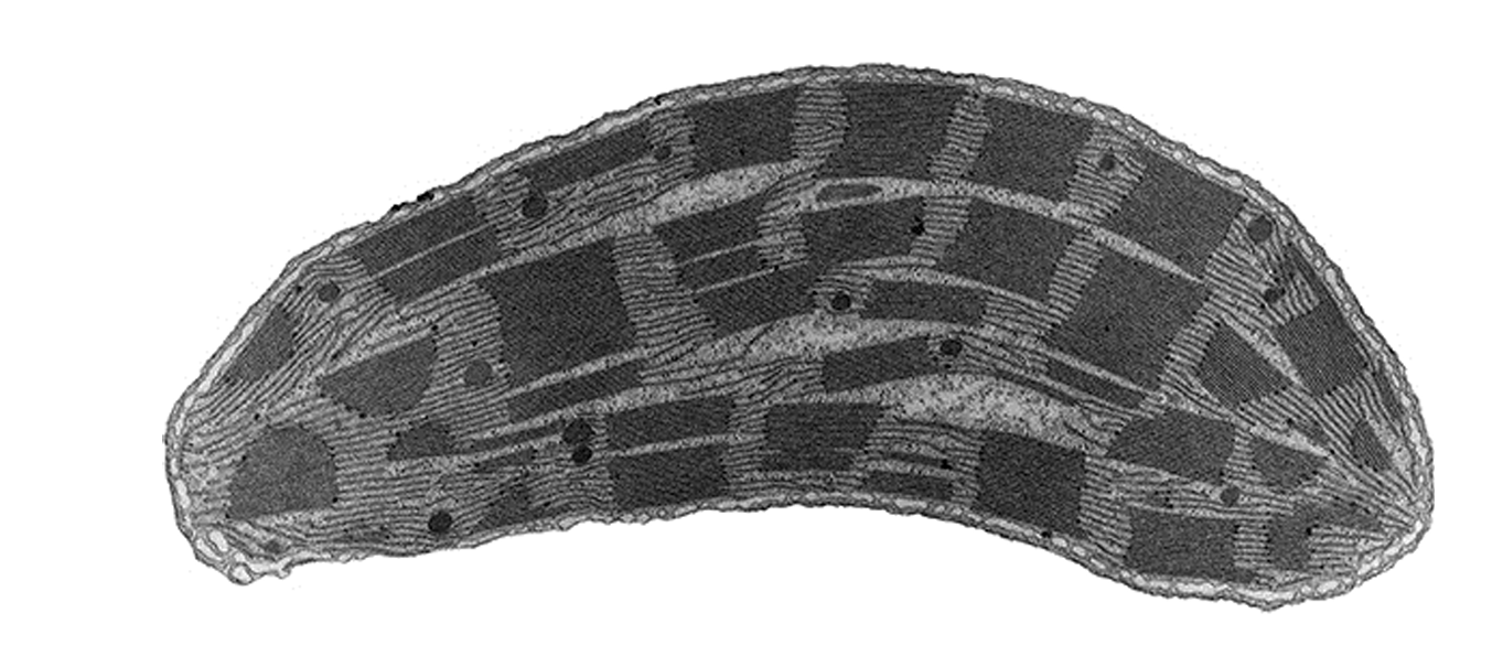 The diagram shows an image of a chloroplast. The image is $5\text{ cm}$ long.