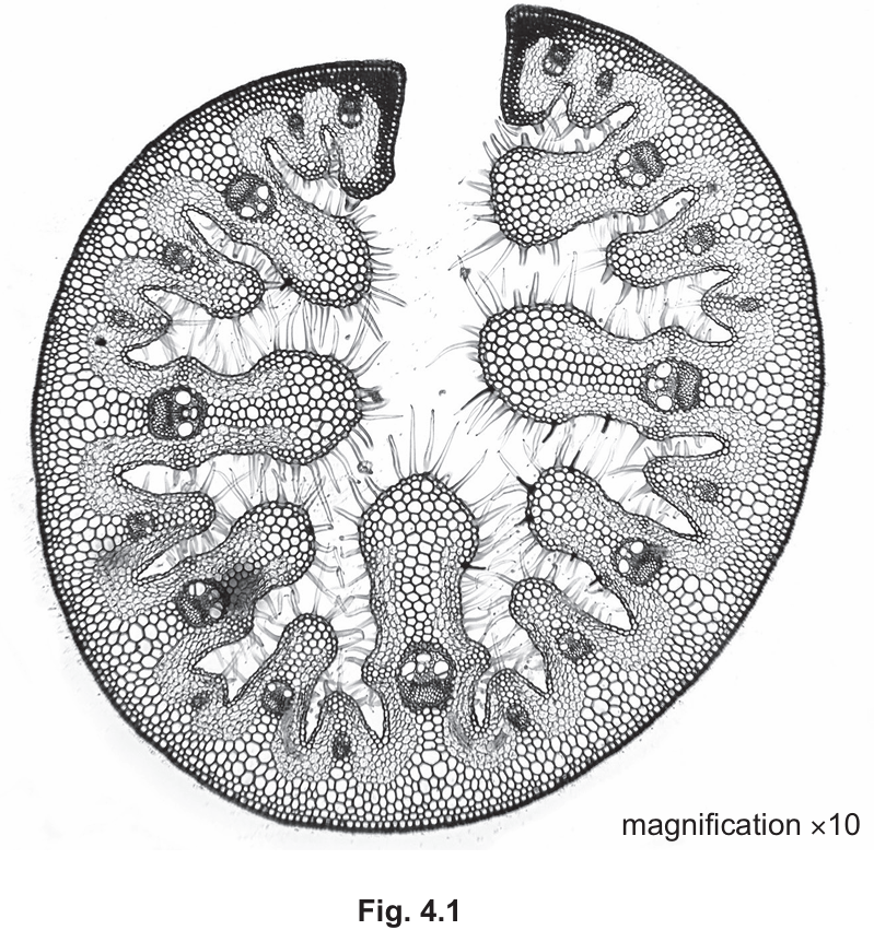 Fig. 4.1 is a photomicrograph of a cross-section of a marram grass leaf.