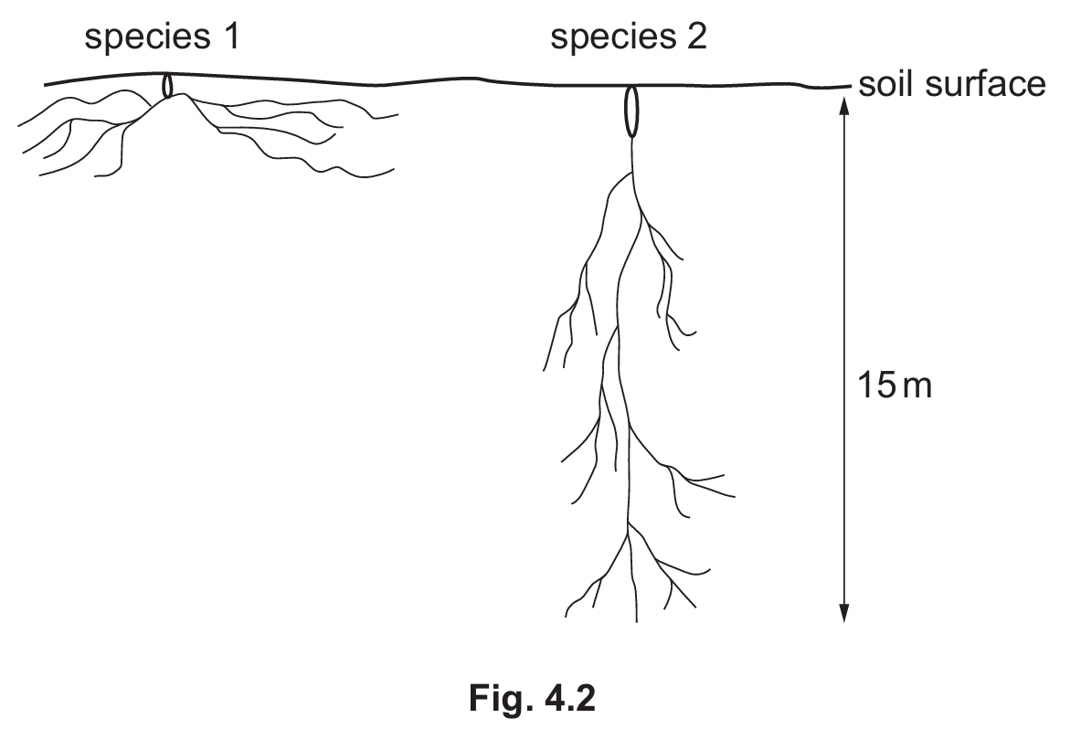 (d) Fig. 4.2 is a diagram showing the root systems of two different species of xerophyte.