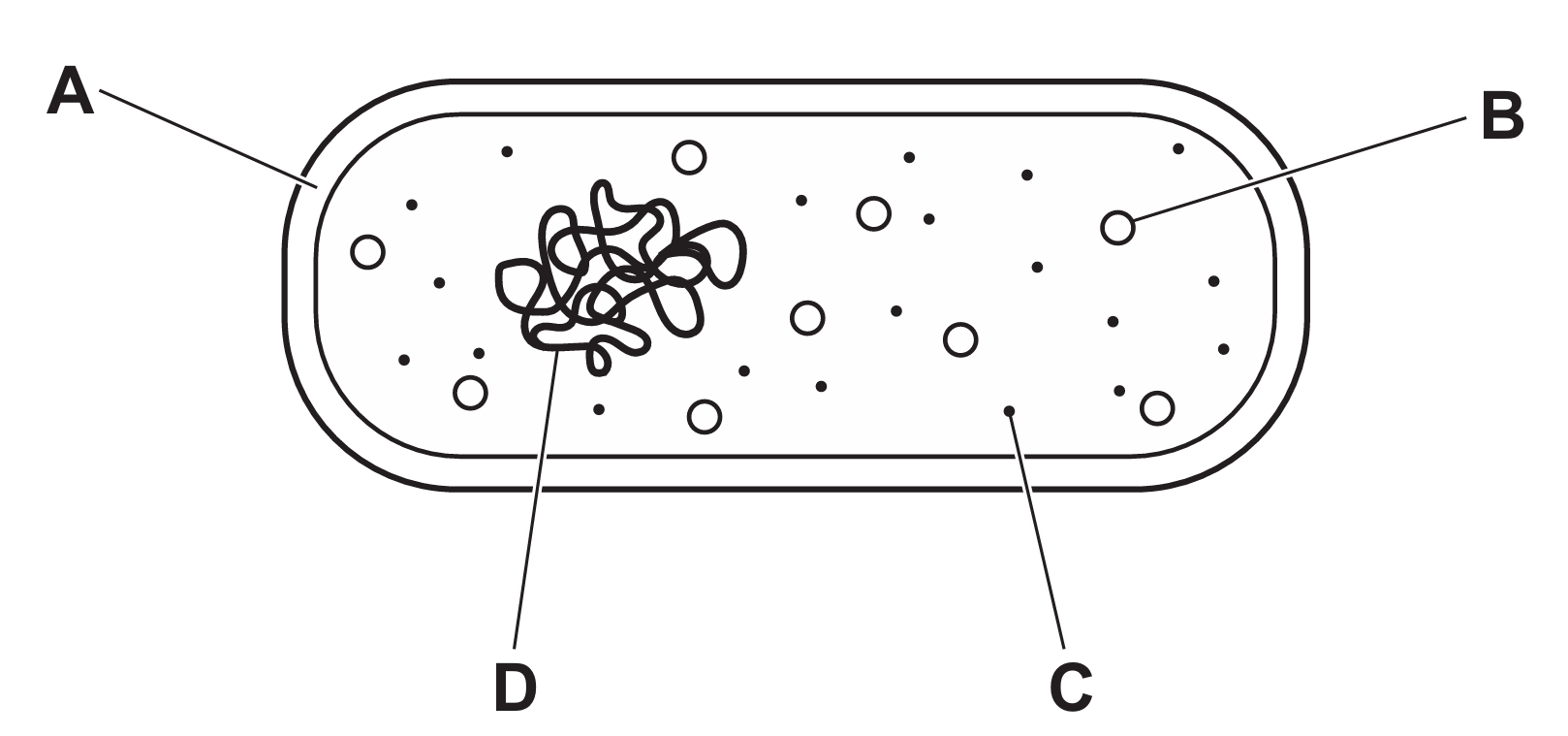 The diagram shows a bacterial cell.