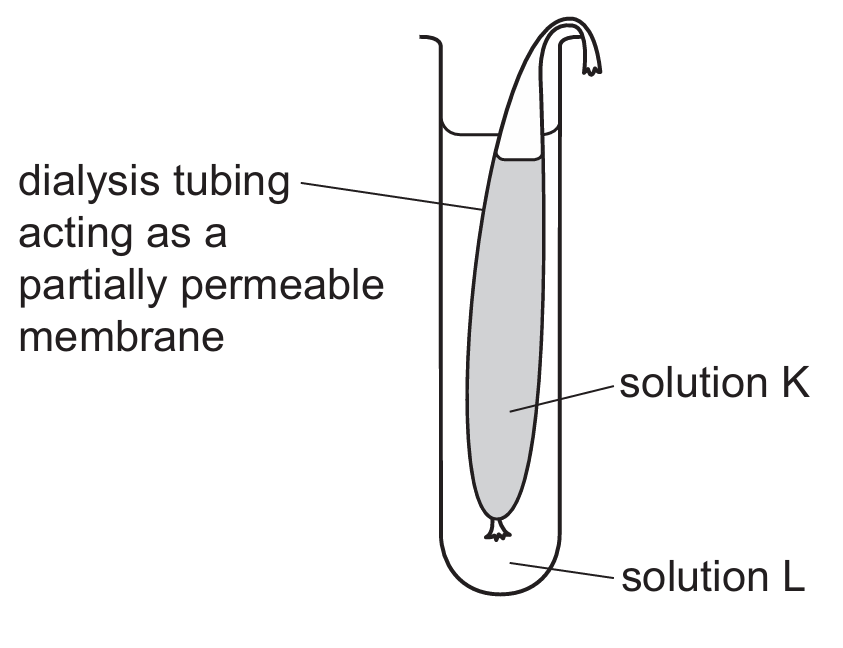 This question tests the concept of osmosis, which is the net movement of water molecules from a region of higher water potential to a region of lower water potential through a partially permeable membrane.
