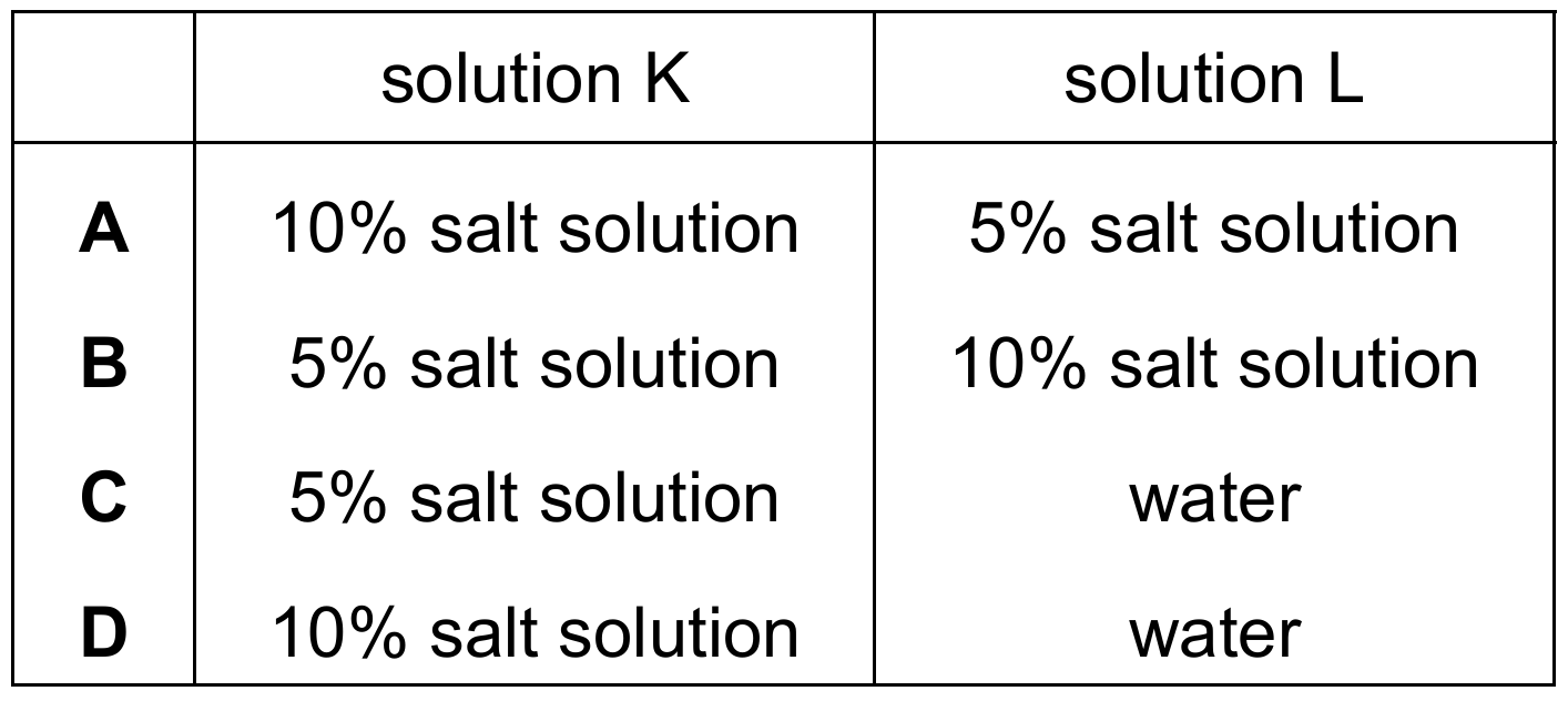 - Solution K (Inside): Must have a lower salt concentration (more water).
