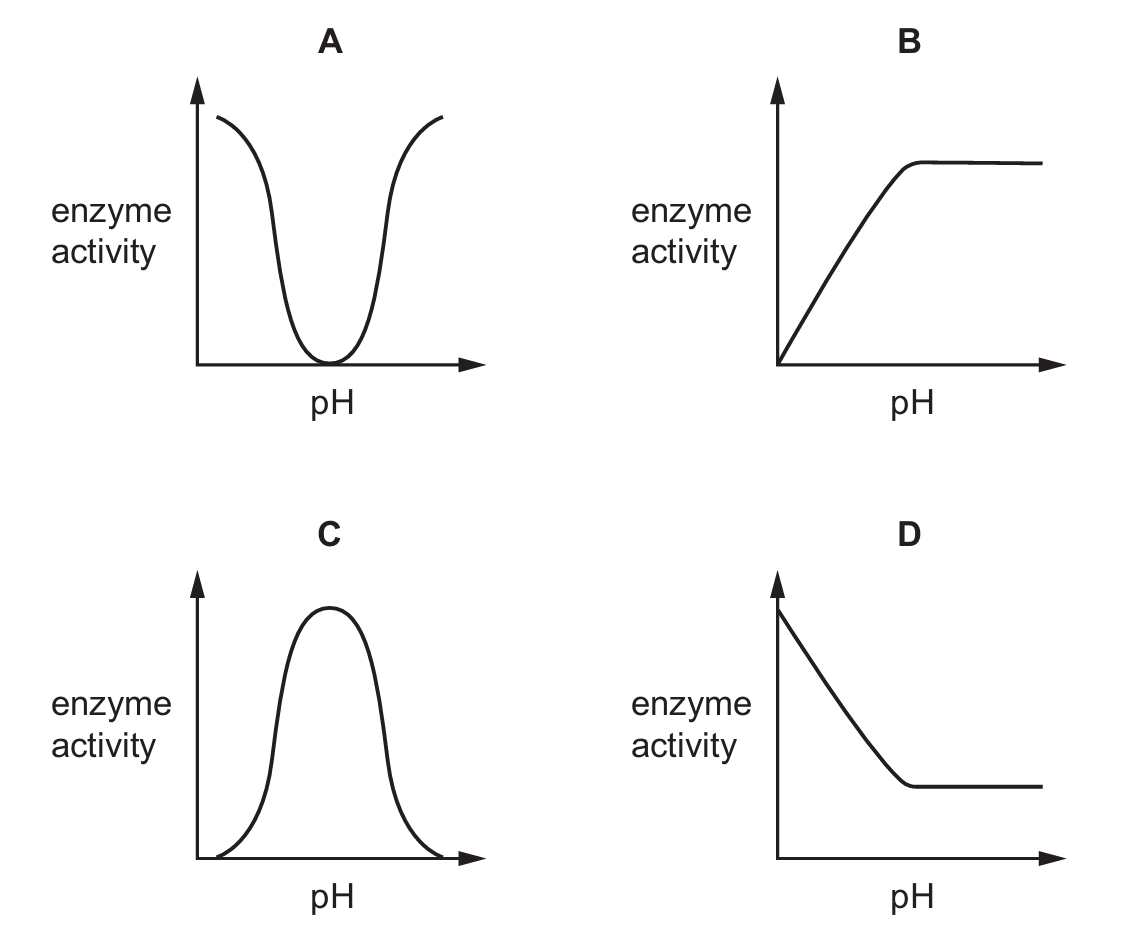 Consequently, enzyme activity is highest at the peak and drops off to zero on either side, creating a characteristic bell-shaped curve. Graph C correctly illustrates this relationship, showing a single clear peak of maximum activity.