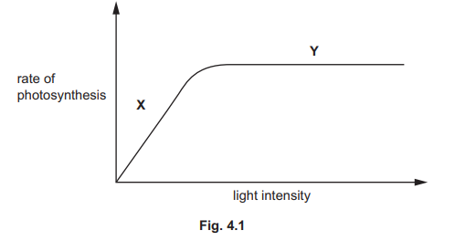 (ii) Fig. 4.1 is a graph showing the effect of light intensity on the rate of photosynthesis.