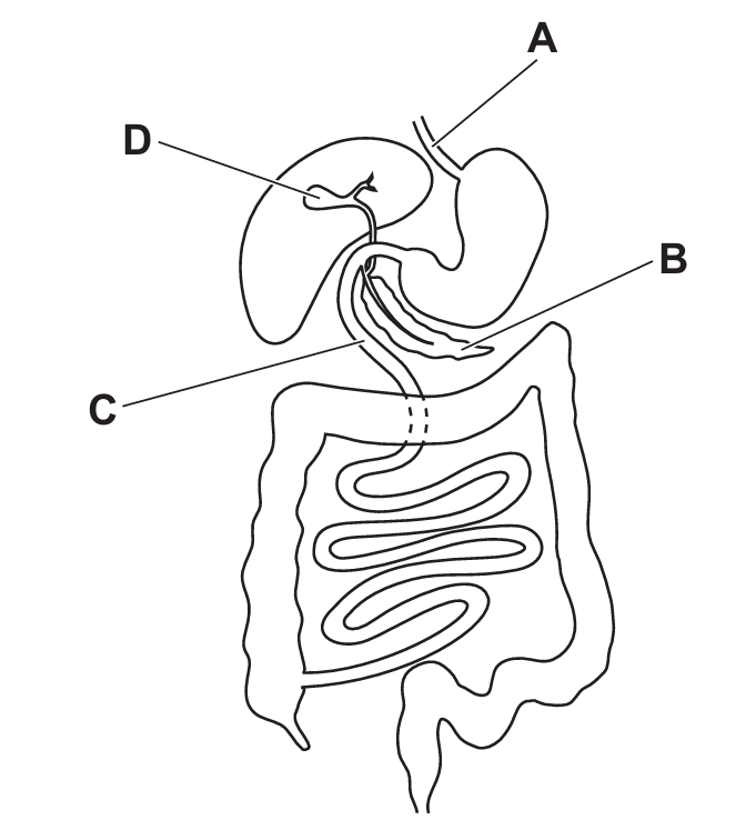 The diagram shows part of the human digestive system.