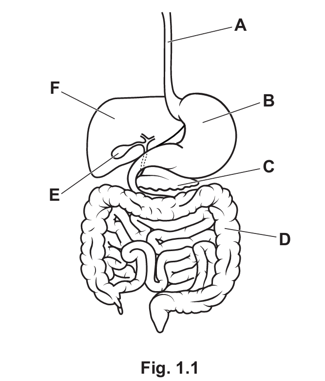 (b) Fig. 1.1 is a diagram of the human digestive system.