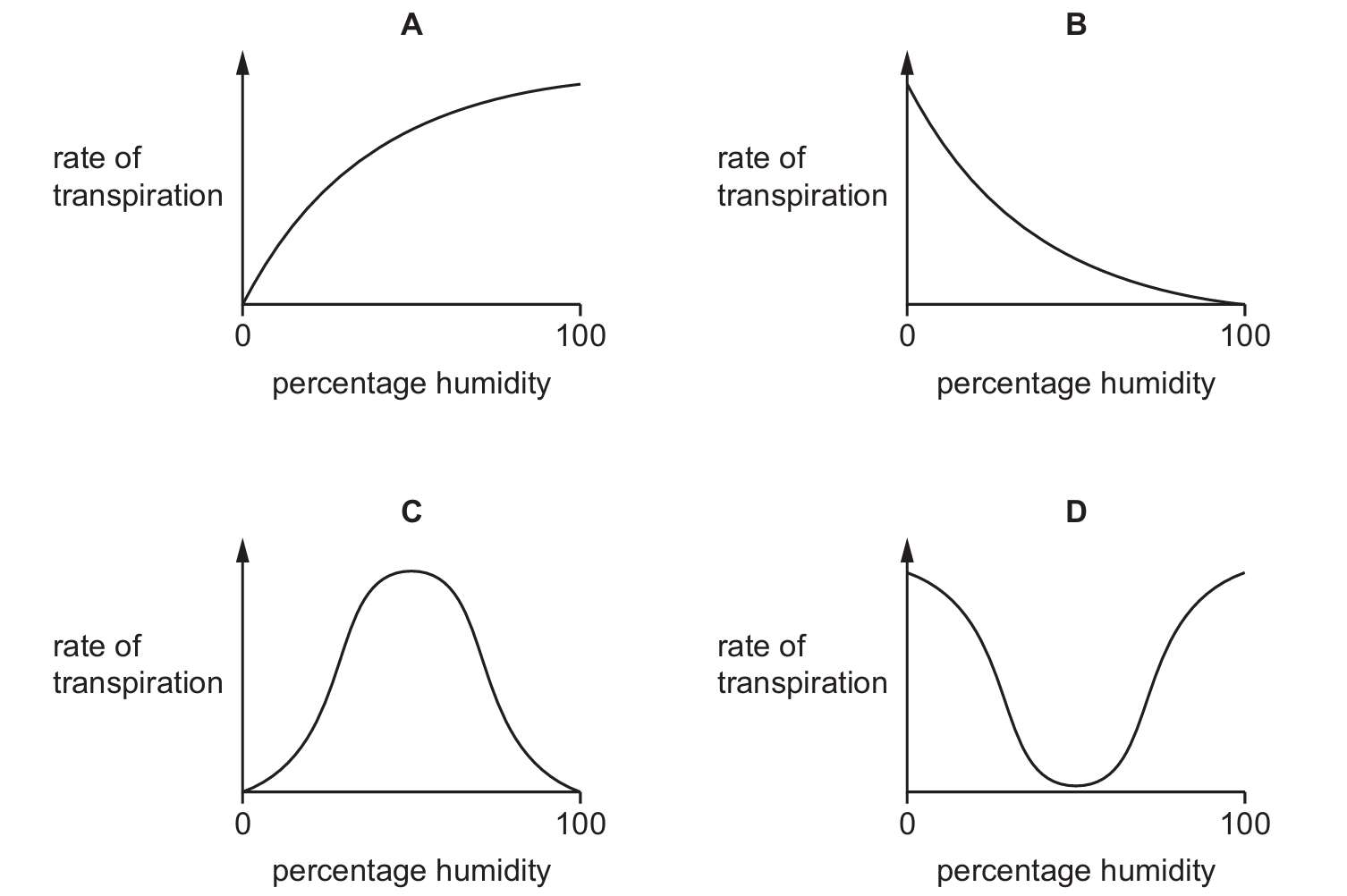 Which graph shows the effect of humidity in the air on the rate of transpiration in a plant?