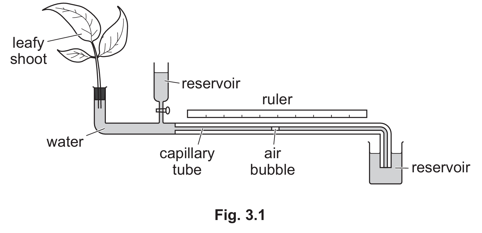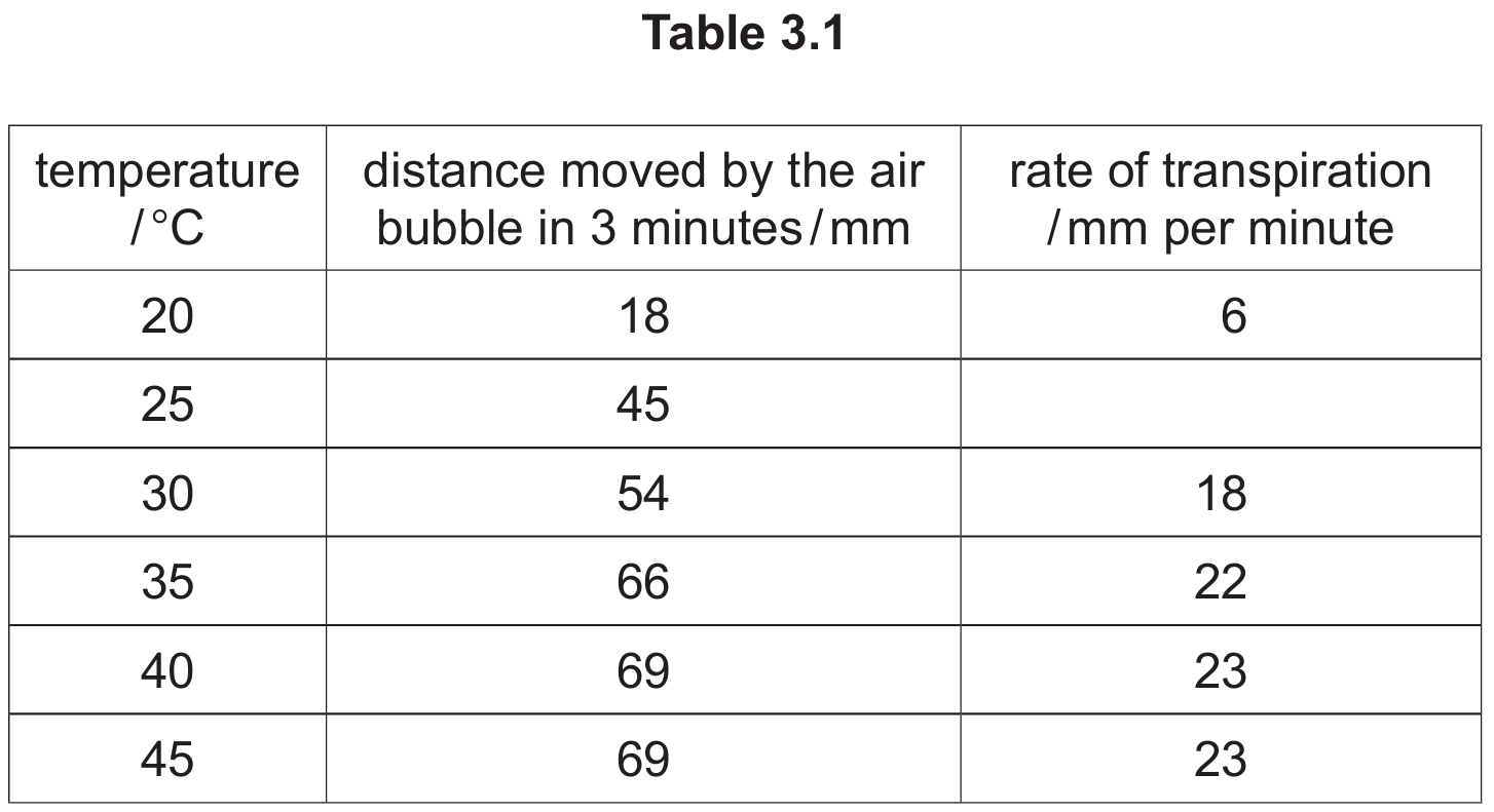 (i) Using the data in Table 3.1, calculate the rate of transpiration at (25^\circ\text{C}).