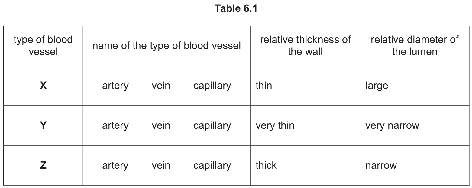 • Row Z: Artery (Thick wall, narrow lumen)