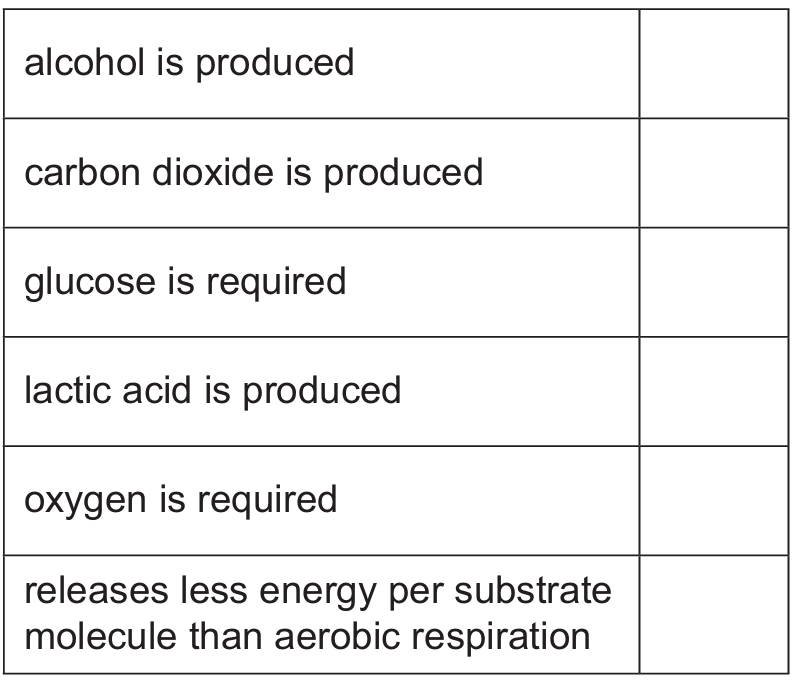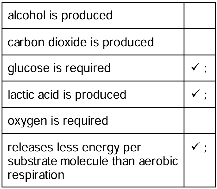 (i) Tick (✓) three statements that describe anaerobic respiration in humans.