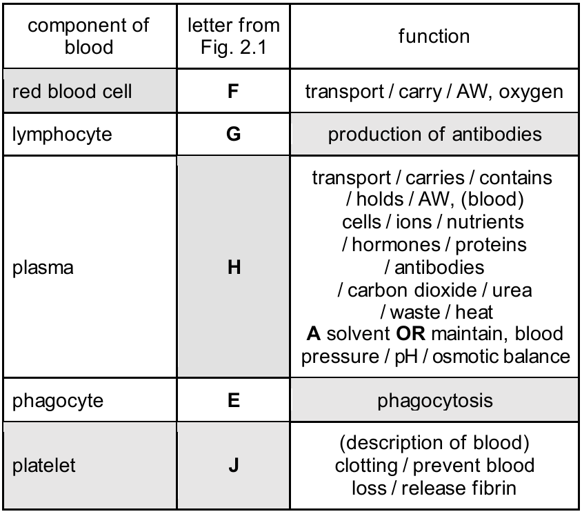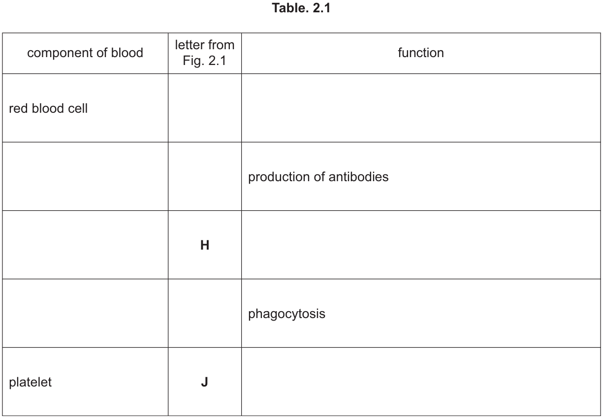 (a) Use the information in Fig. 2.1 to complete Table 2.1