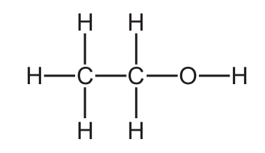 Ethanol has the molecular formula C2H5OH, which can be represented as CH3-CH2-OH.