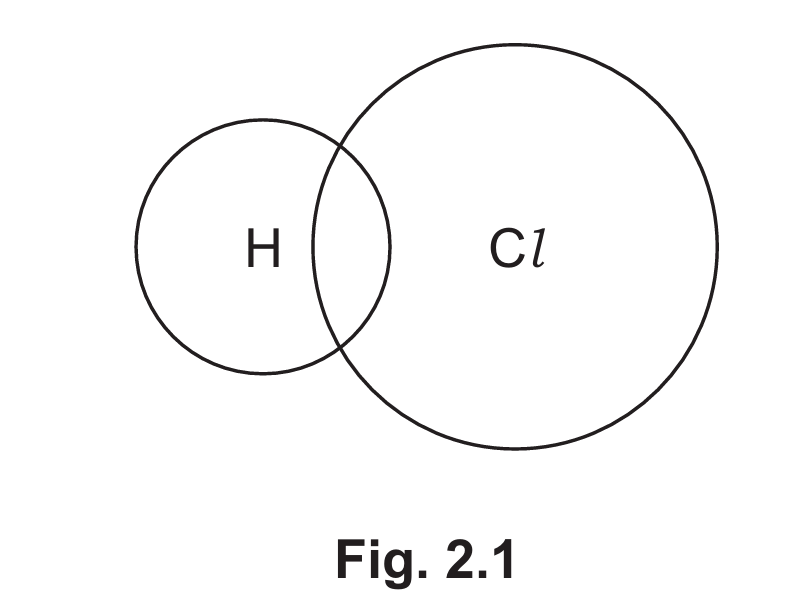 (iii) Complete Fig. 2.1 to show the dot-and-cross diagram for a molecule of hydrogen chloride. Show outer shell electrons only.