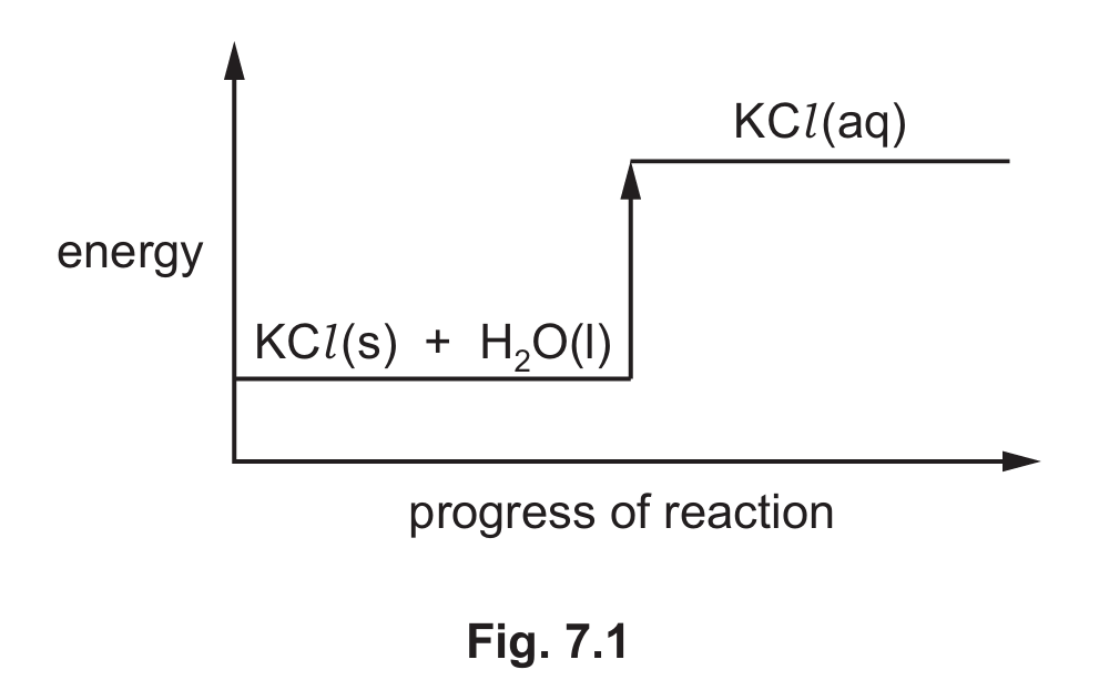 – Explain how Fig. 7.1 shows that dissolving potassium chloride in water is endothermic.